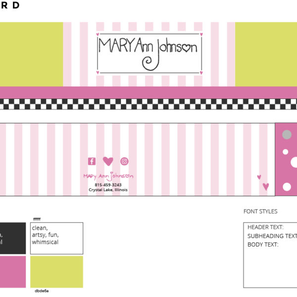 Mary Ann Johnson A website that will make you smile ? Mary Ann Johnson started her career as a greeting card artist after her two children went off to college. She has sold more than 1 million cards and gifts through Recycled Greetings, a greeting card company dedicated to promoting independent artists. You’ll find her cards sold at many major retailers such as Target and Walmart. Mary Ann was looking for someone to help create a website that truly represented her and her fun and whimsical style. Using moodboards to define and target the site’s simple style, creating illustrations to augment the site’s graphics, and photographing all of Mary Ann’s cards and gifts to showcase her work in the best light possible, Clicks Web Design created a WooCommerce website that not only matches her personality but is easy for consumers to peruse and purchase her products. Product Photography Work: Clicks Web Design creates thoughtful and artistically arranged photos to showcase Mary Ann’s products. Image Preview Moodboards: The use of moodboards help communicate & define website branding prior to development. Image Preview This project involved: PhotographyWeb DesignWooCommerceWordPress Visit Website