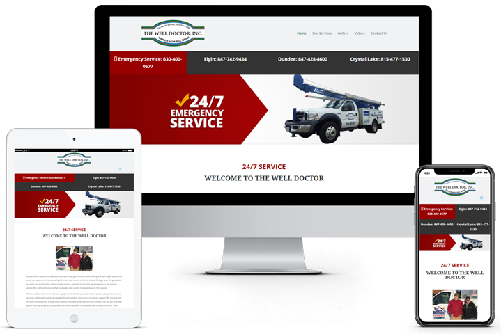 The Well Doctor, Inc. Long-time Local Business Dips Toes into Online Waters Well Doctor, Inc. is a complete water well service company located in Elgin IL. They are family-owned and operated and have three generations of well drilling and well repair experience. Well Doctor needed a simple and easy solution to establish an online presence for their business. Clicks Web Design was able provide a website that promoted their 24/7 emergency services, display videos of their work, and dial in their messaging to promote the SEO benefits of being online. A simple solution with big impact for this local business. This project involved: Web DesignWordPress Visit Website